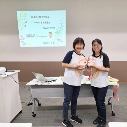 親御さんが子どもさんの心音を聴いたり。子どもさんがお父さんの心音を聴いたり
