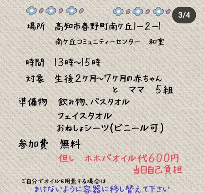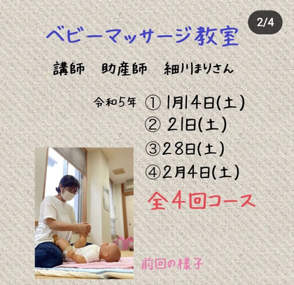 はるのわくわくポケットさんのベビーマッサージ教室が残2席になったようです🙆
