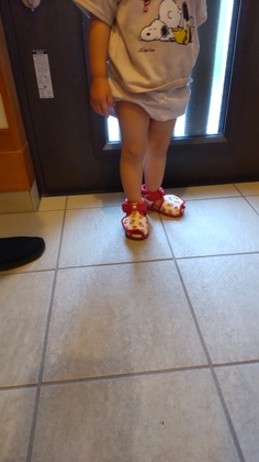 赤ちゃんに付きそって、パパとお姉ちゃんも来てくれました。お姉ちゃんは赤ちゃんの時に出会ってから2年ぶりかな。このお靴見せるの。と履いて来てくれたそうです。