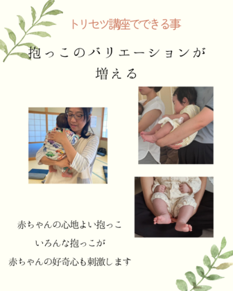 ハンドリングやバランシングセラピーをお伝えしながら、赤ちゃんの出来たが増えたり、出来た時の赤ちゃんの顔がハッとしたり、ママの自信になったり。改めて赤ちゃんとの関わりや成長に寄り添うサポートが出来たら良いなと思います。