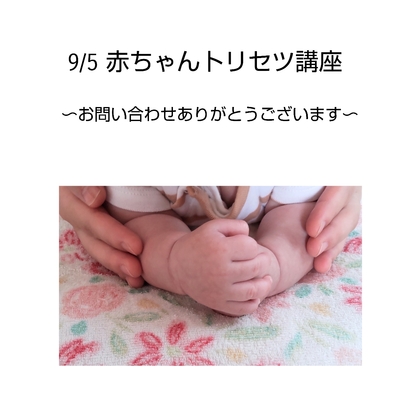 9/5 赤ちゃんトリセツ講座にお問い合わせ、お申し込みありがとうございます。